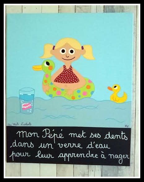 Mon Pépé met ses dents dans un verre d'eau pour leur apprendre à nager.